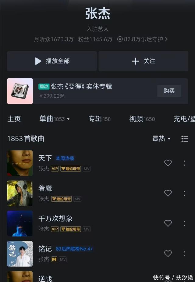 接下来分别说说王力宏和张杰,坦白讲,这两位的数据都超出了我的预期。 王力宏的翻红是成功的,稳住了音源数据,并且演唱会也在持续进行中,这就完全体现出了他的基本盘有多么扎实。 至于张杰,咱们实话实说,这些年的张杰出的大爆款,相较于巅峰期的他,少了太多太多。 但是即便如此,收听数据依然足够夸张,光是《天下》这一首歌曲,就足够让张杰养老了。