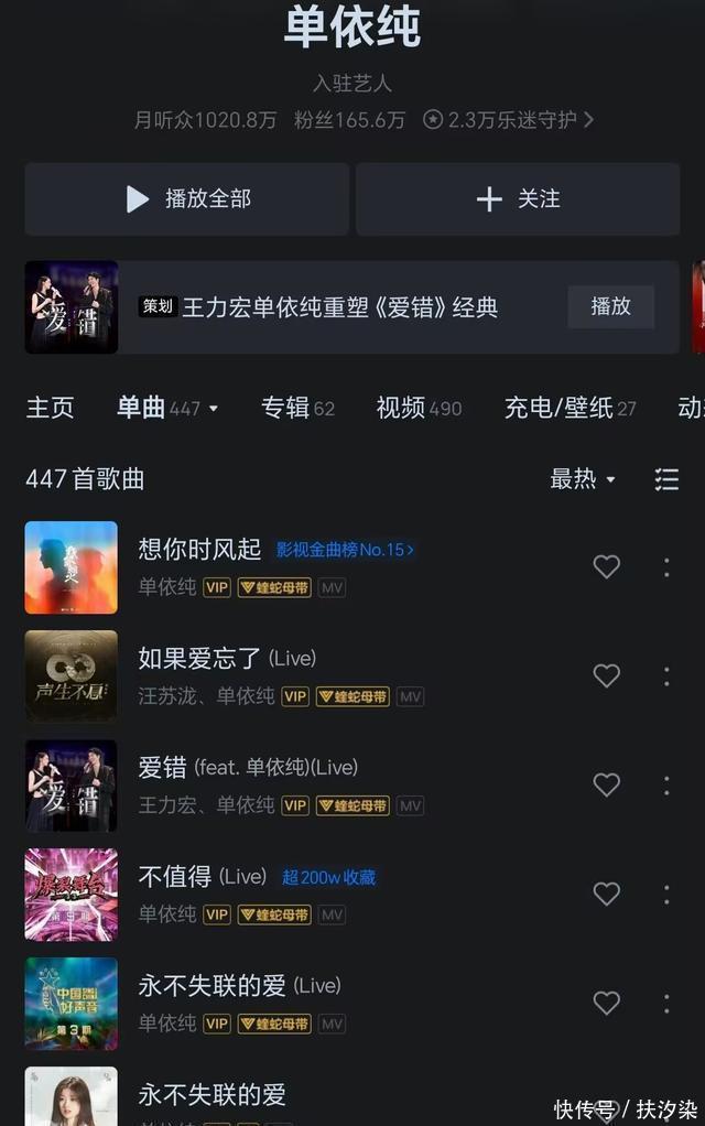 尽管单依纯在流媒体平台以及QQ音乐表现强势,但是我们必须承认的一点是,她需要更多的爆款代表作品。 VOCAL路线的歌手如今在酷狗音乐方面的代表作分别是:《如果爱忘了》和《永不失联的爱》,这样的数据,显然是不行的。